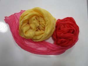 紅花でストールを三色染めする