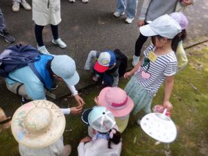 水に触れ水路を飛び越えたり、アメンボを見つけたりすることができました。
