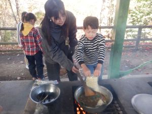初めての仲間と宿泊棟に泊まり、野外炊事、たき火、クラフト、もちつきなどを通して冬の自然に親しむことをテーマとしているキャンプです!