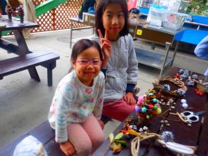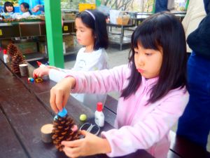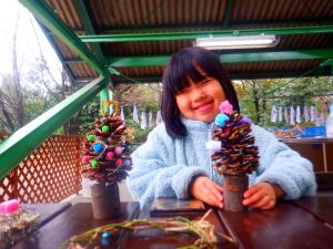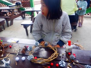 上手に火を起こして、焼き芋の出来上がりを待っている間に、自然素材を使ったクリスマスツリーやリースを作りました!(^^)!
