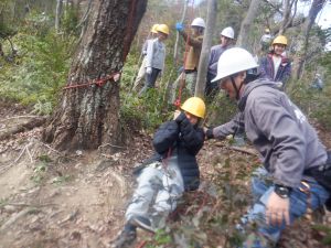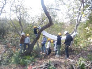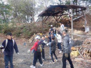 指示されたサイズの木材を炭窯へ運ぶ、長さを切りそろえる、節を切り落とす、木っ端(隙間に詰める用の小さな木材)を作る等、炭焼きは火入れまでに行う作業が多岐に渡ります。班で役割りを分担して協力して作業を進めることができました!!(^^)!