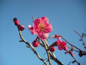 当日は天気も良く、青空と赤い梅が春の予感を告げていました。