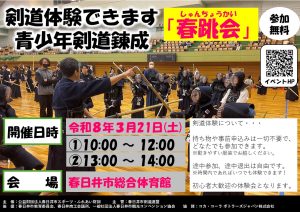 この体験会は、小中学生の剣道技能向上を図るためのイベント【春跳会】の一環で